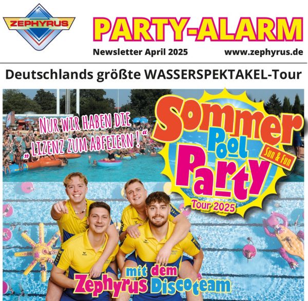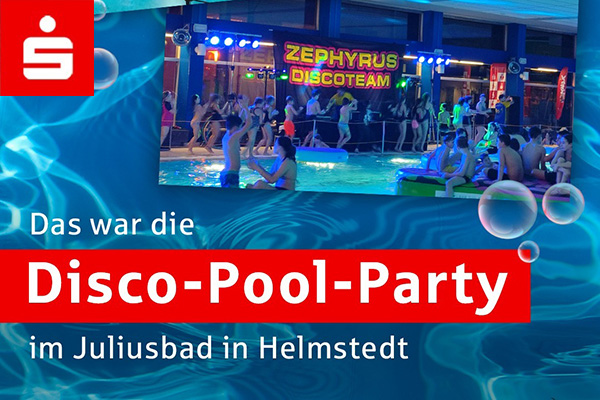 Seit 14 Jahren feiern wir mit der Bäder- und Dienstleistungsgesellschaft Helmstedt mbH und der Braunschweigischen Landessparkasse 1 x pro Jahr eine ZEPHYRUS-Pool-Party im JULIUS BAD in Helmstedt.