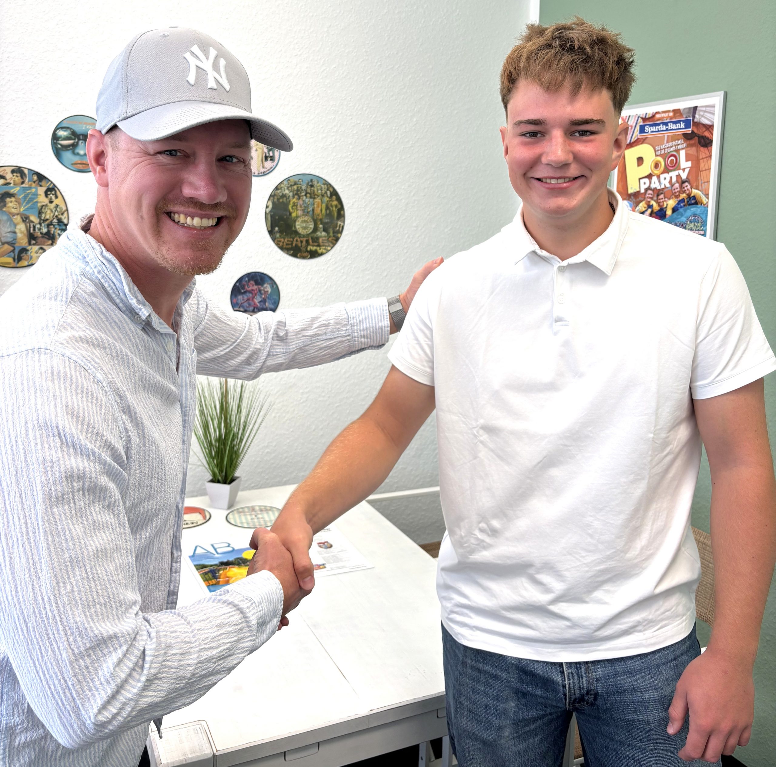 … unsere beiden neuen Azubis. „Herzlich willkommen im Team – Nico Fecke und Paul Kehl“, wünscht Geschäftsführer Tim Beimel, „wir freuen uns sehr, dass sie sich für uns entschieden haben, sie sind definitiv schon jetzt eine Verstärkung – quantitativ und qualitativ.“