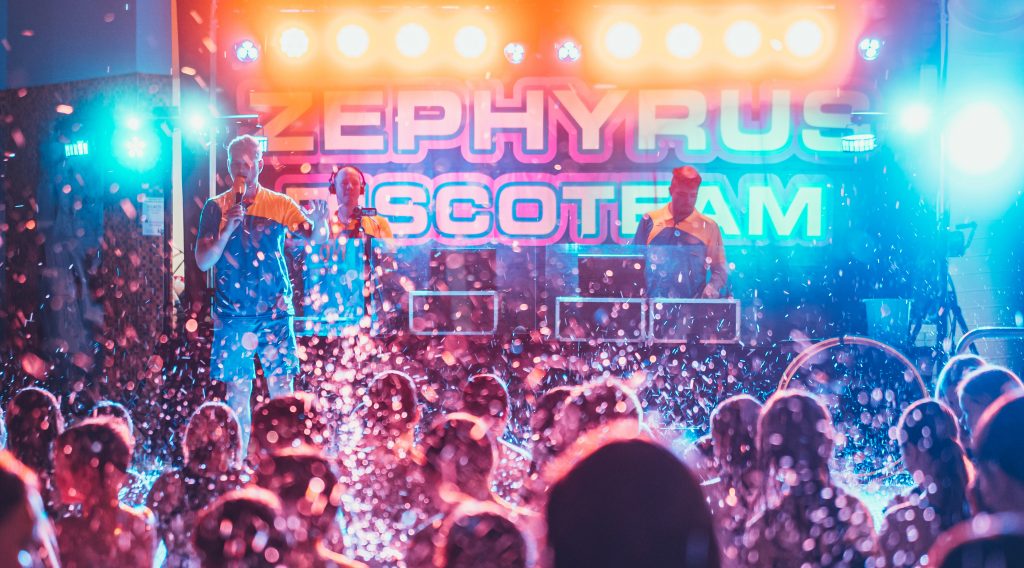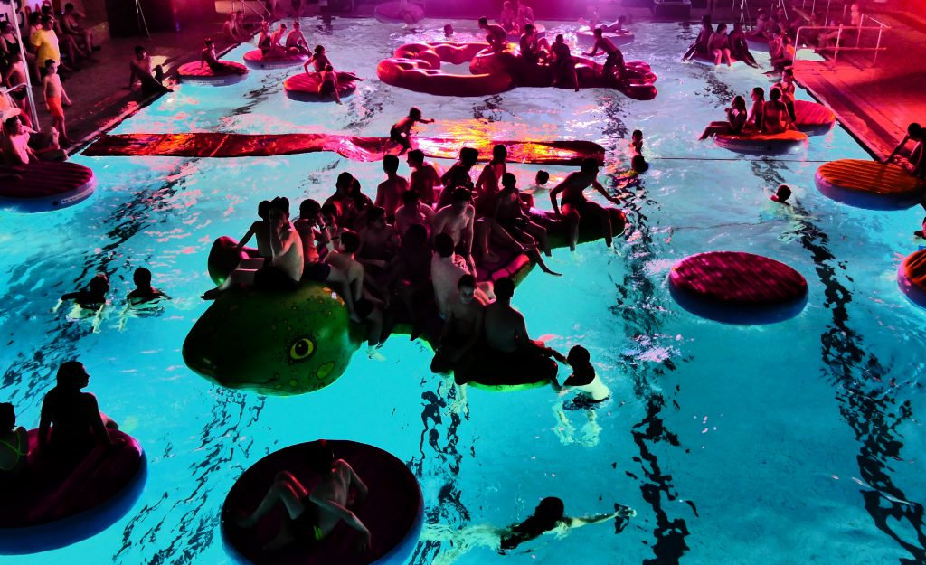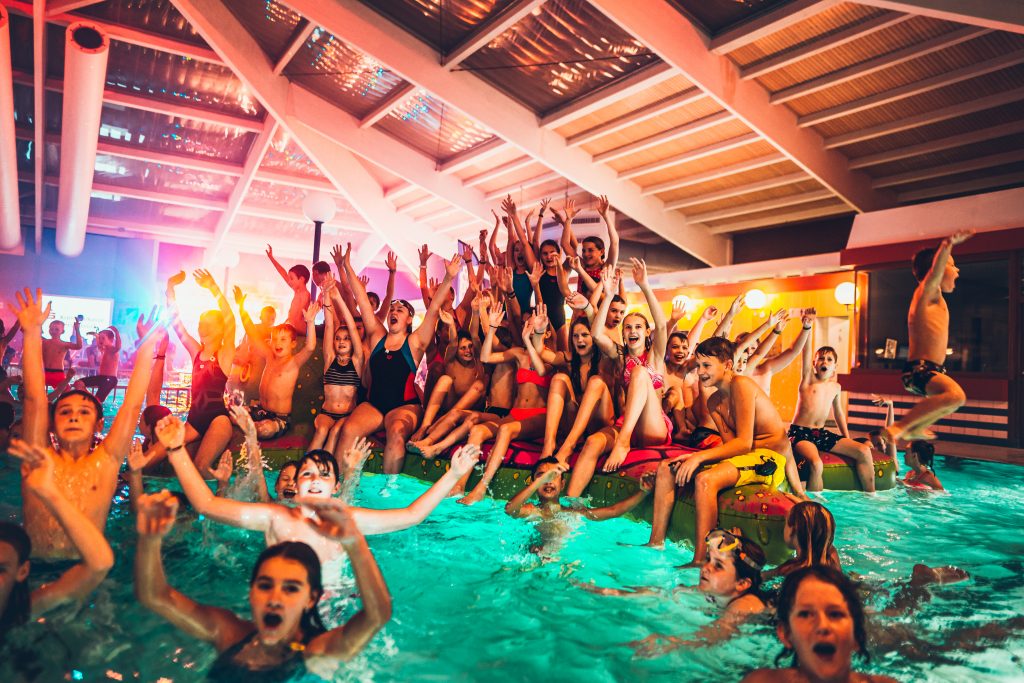 Wenn es draußen dunkel ist, sorgt drinnen unser Pool-DJ mit angesagten Dancefloor-Beats für den richtigen Sound. LED-Lightshow und Nebeleffekte schaffen Club-Atmosphäre. Aqua-Module laden zum Chillen ein und die einzigartigen Water-Globes leuchten von innen in bunten Farben.